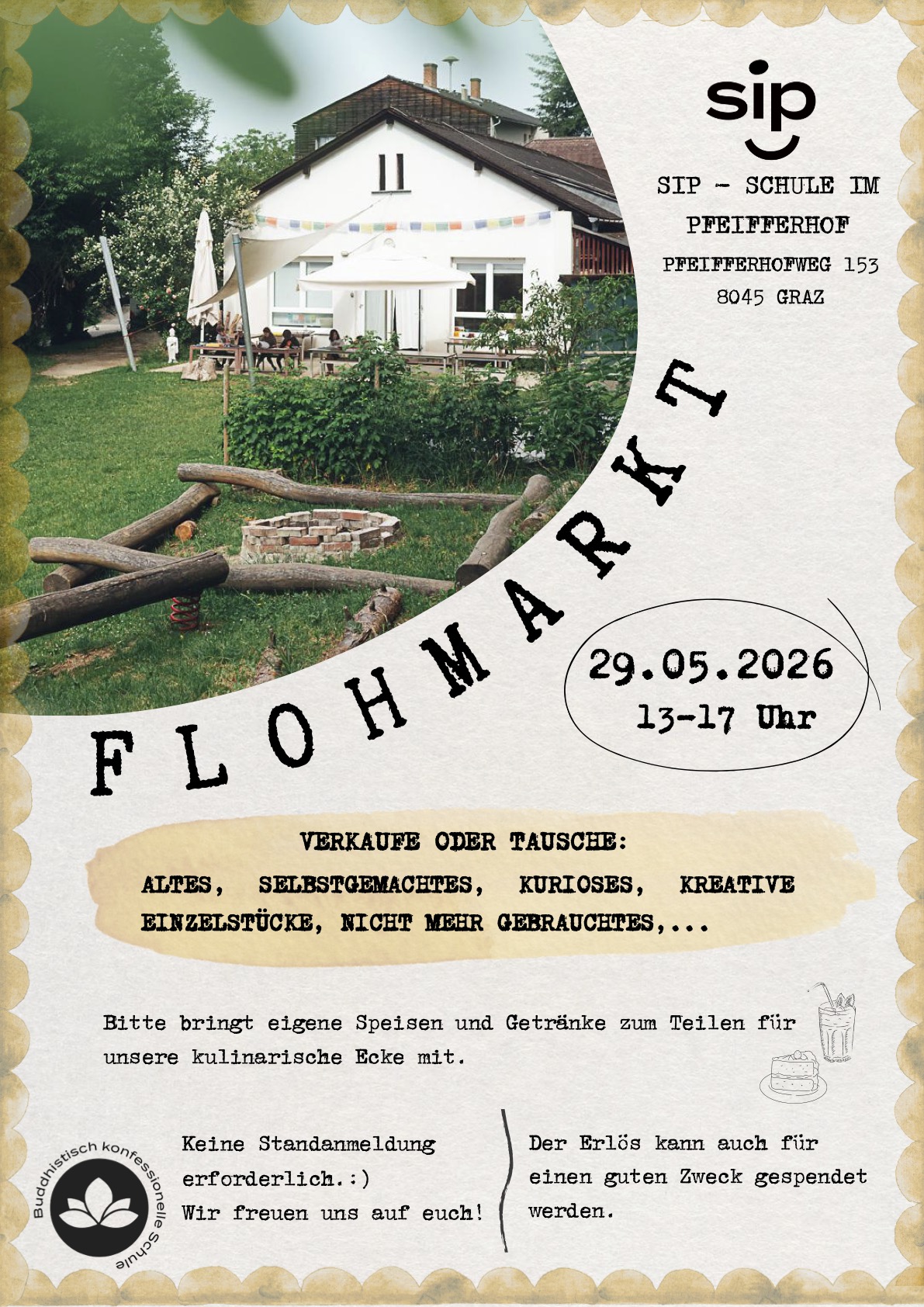 Am 29. Mai 2026 von 13-17 Uhr findet unser jährlicher SiP-Flohmarkt in der Schule statt.